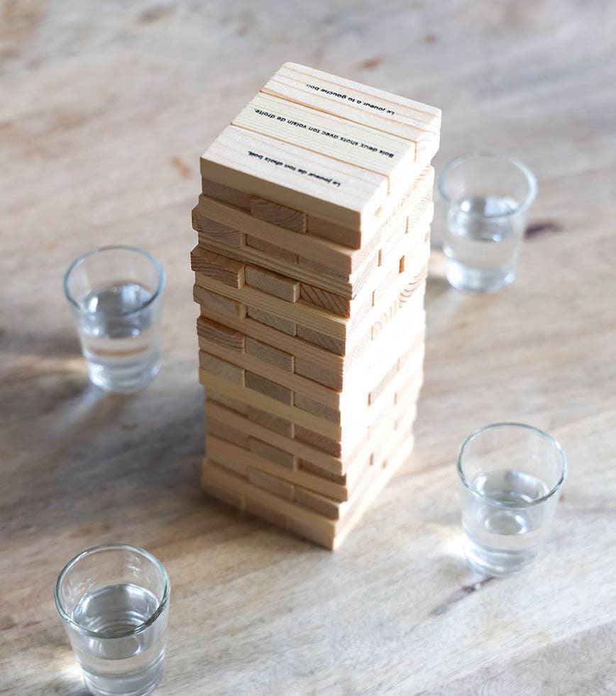 Discover an adult version of the famous wooden construction game, the kaplas! This time, each board is associated with an action to be carried out. If the tower collapses, the offending player will have to drink a dry cup (or even two). A fun game that promises lively evenings with friends!