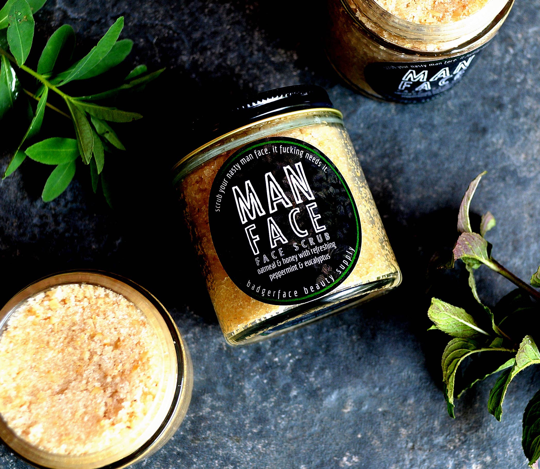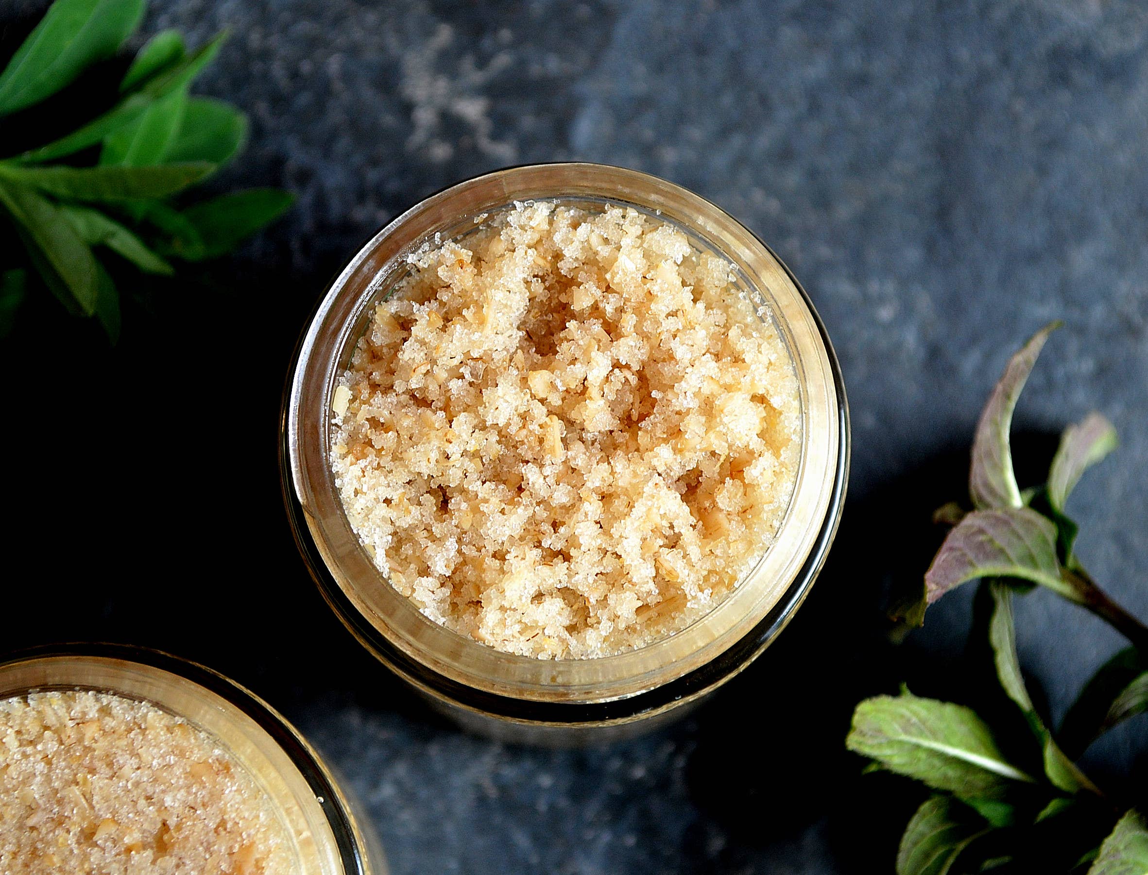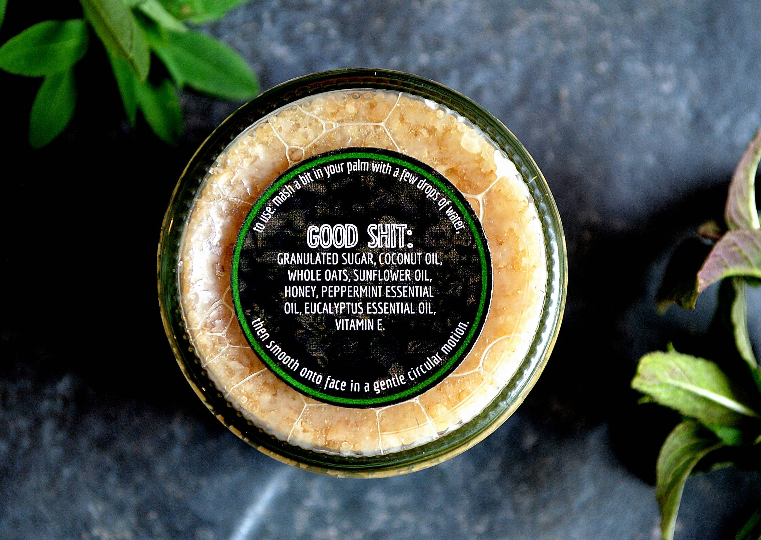 Ingredients: This natural face scrub is made with granulated sugar, honey, ground oatmeal, coconut oil, sunflower oil, vitamin E, and peppermint & eucalyptus essential oils.